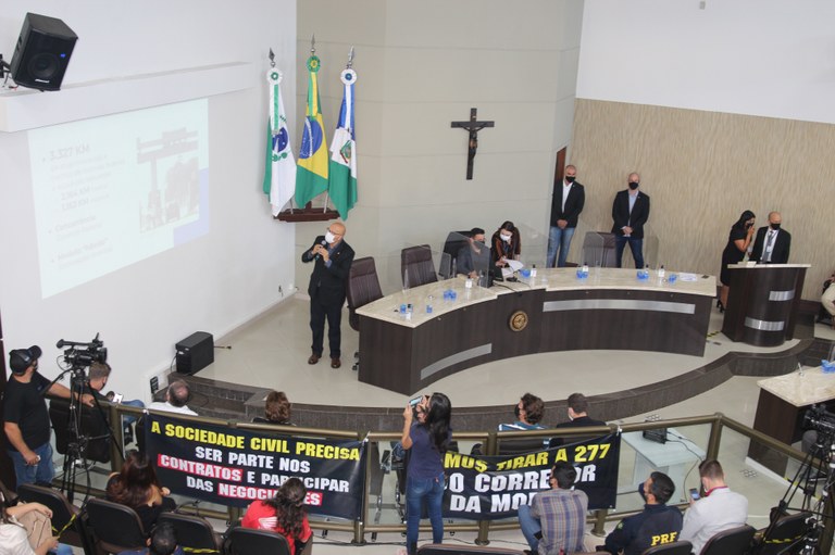 Audiência Pública realizada no dia 18 de fevereiro de 2021 na Câmara Municipal de Guarapuava pela Frente Parlamentar sobre o Pedágio da Assembleia Legislativa do Paraná